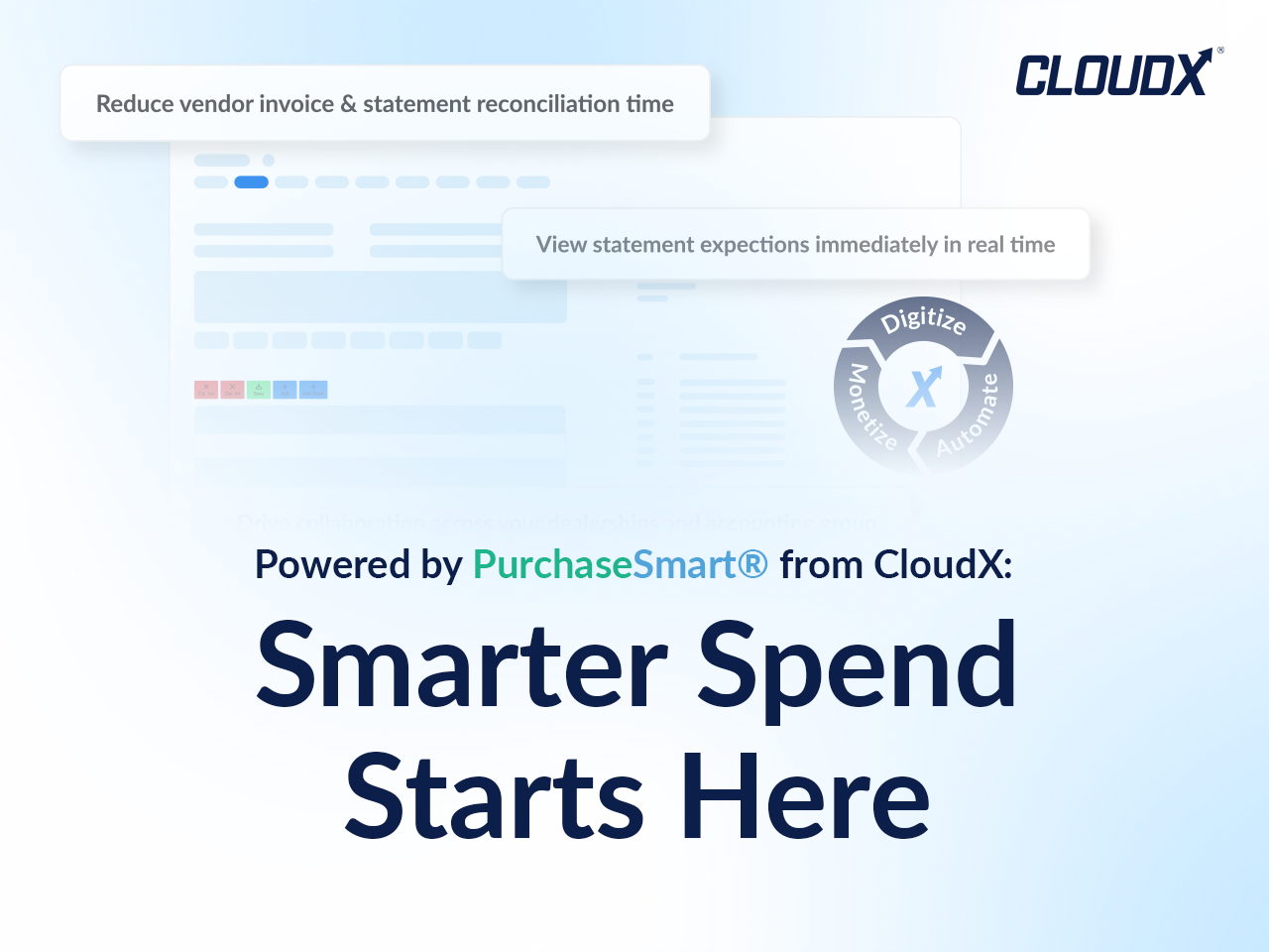 NORTH HAVEN, CT, UNITED STATES, February 4, 2026 /EINPresswire.com/ -- CloudX®, a SaaS company delivering clean data-powered accounting automation solutions nationwide, announced it will highlight the PurchaseSmart® vendor spend optimization solution at NADA 2026 from February 4-6 in Las Vegas.
